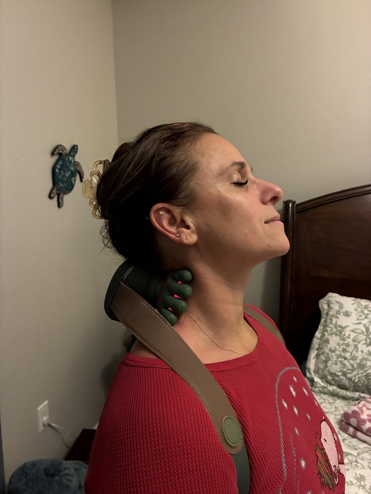 I absolutely love this product!! Does exactly what it says it does, and feels fantastic! I use it everyday after work and my stress just melts away. I definitely recommend this!! The massage feels like a real person, very comfortable to lay my head back on, and the heat was perfect. In fact while I was at work I didn’t notice my neck hurting at all.